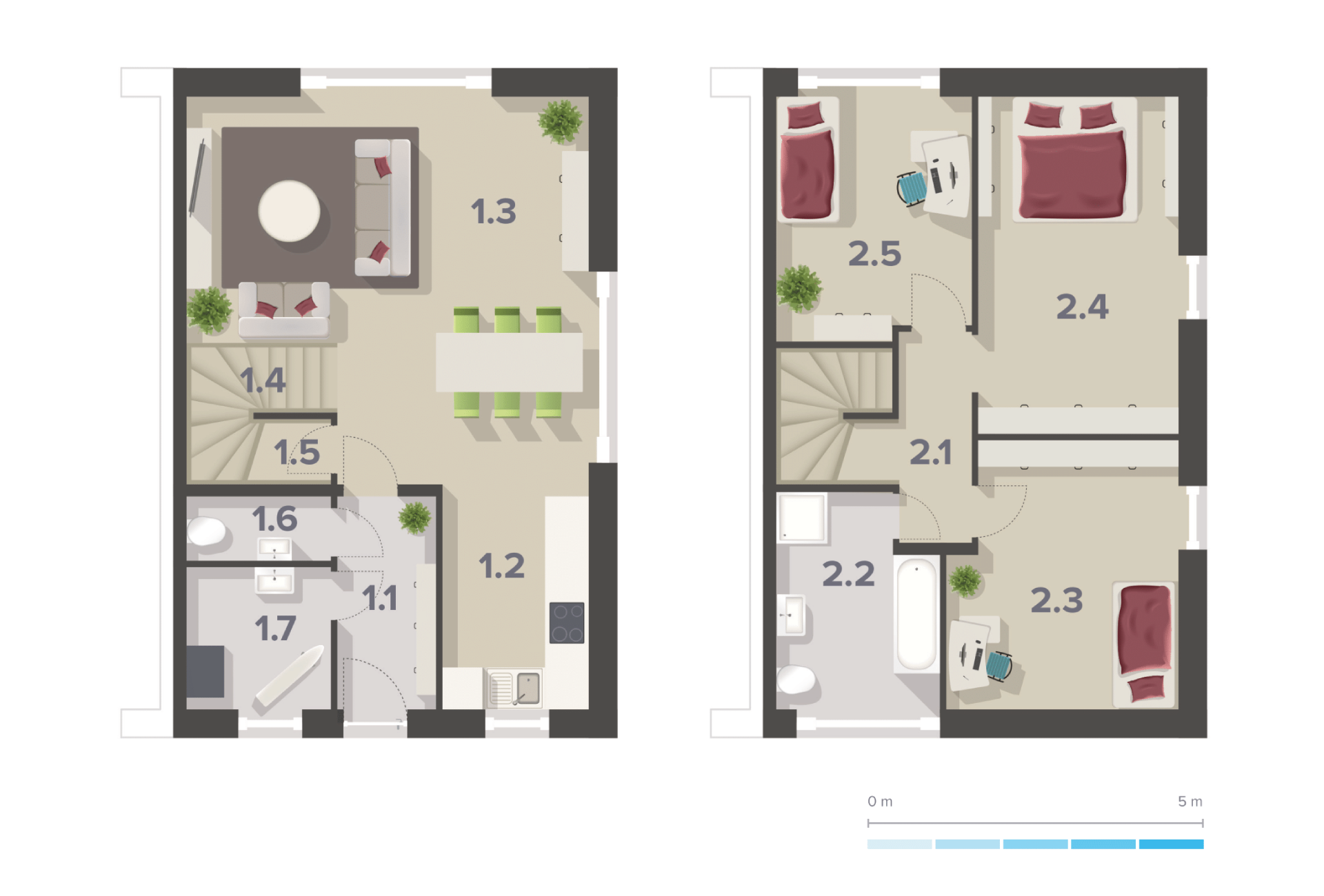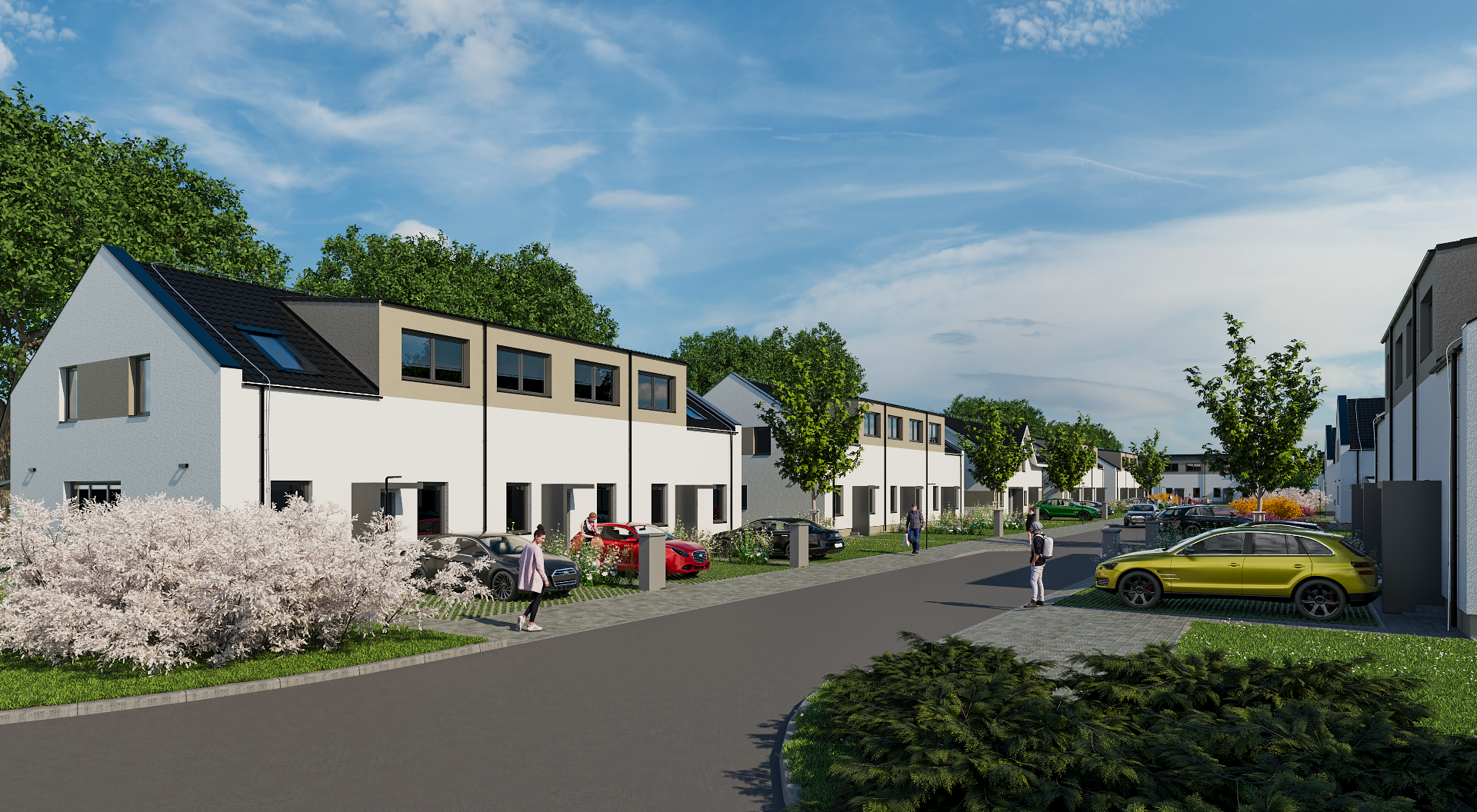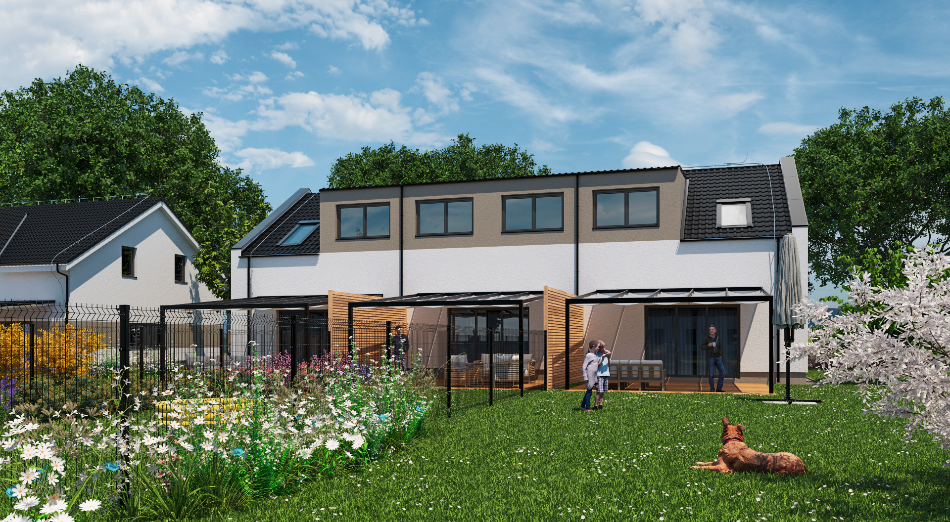 Moderně architektonicky řešený dvoupatrový zděný dům s dispozicí 4+kk, vlastní volbou vnitřního vybavení a zahradou.