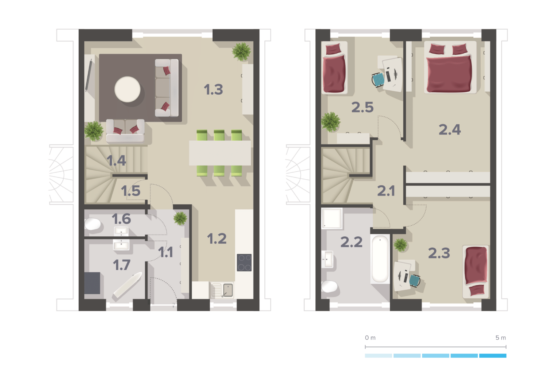 Moderně architektonicky řešený dvoupatrový zděný dům s dispozicí 4+kk, vlastní volbou vnitřního vybavení a zahradou.
